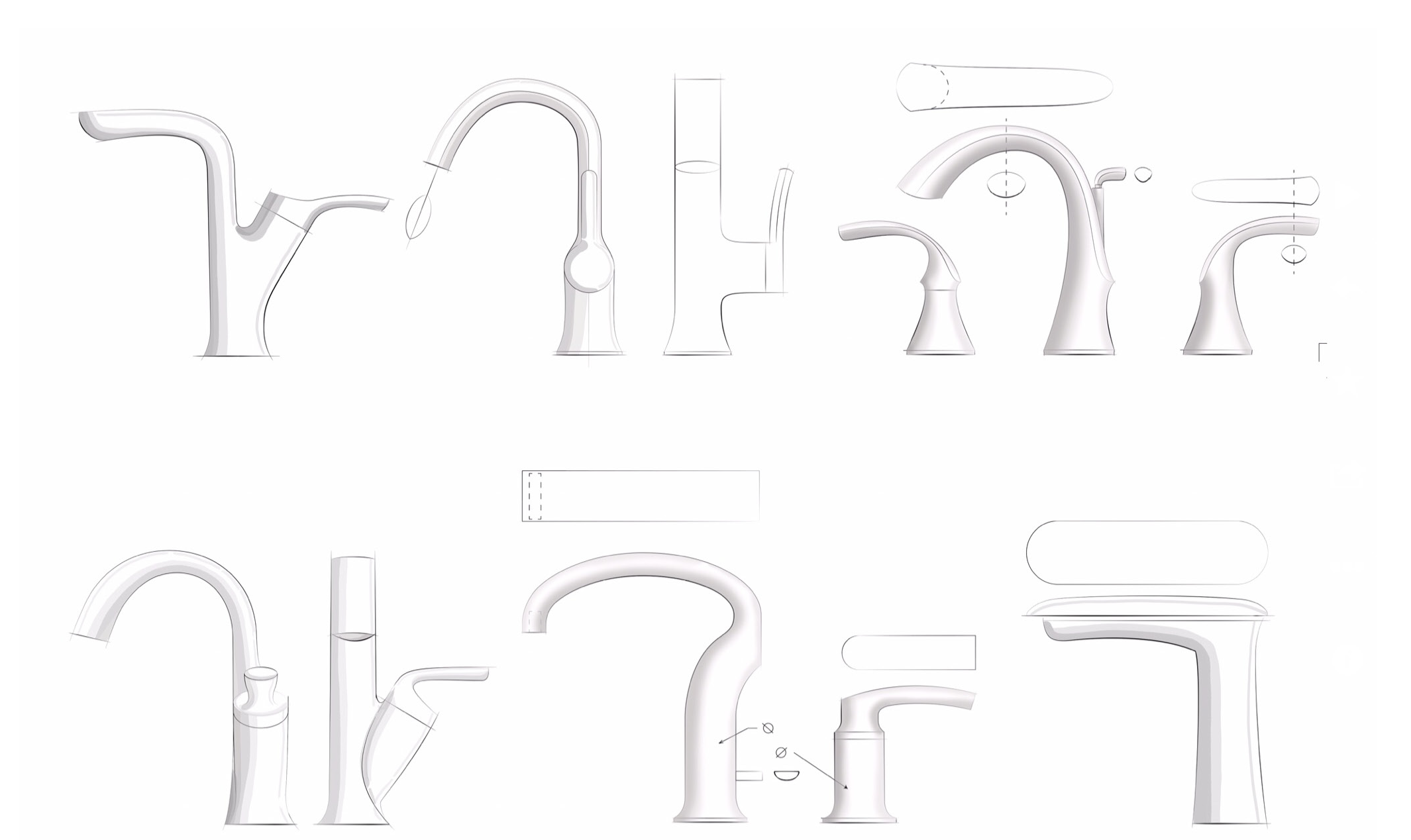 bath designs the design process of a bath faucet for Moen bath designs trend board industrial-soft modern widespread bath pen sketches widespread bath marker sketches for model widespread bath foam models widespread bath chrome models